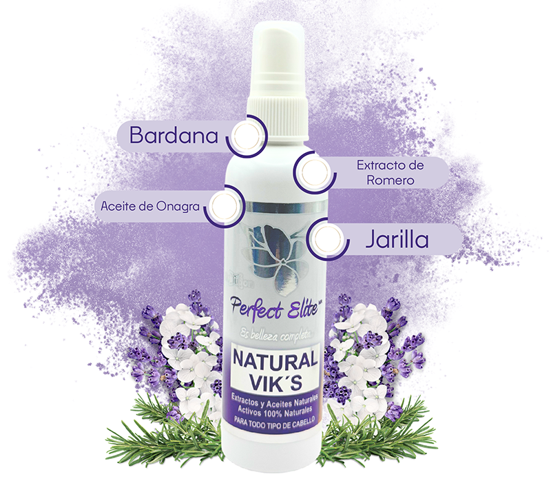 Extracto de romero (Mejora la circulación sanguínea del cuero cabelludo, fortaleciendo el cabello y sus raíces, previniendo su caída) Aceite de onagra (Fortalece los folículos pilosos y mejora la salud general del cuero cabelludo, promoviendo el crecimiento del cabello) Bardana (Contiene vitaminas C y E lo que fortalece, repara y protege las fibras capilares, evitando la caída del cabello) Jarilla (Regenera y fortalece el cuero cabelludo, estimulando el crecimiento del cabello) Agua desmineralizada, Queratina, Aloe Vera (Aloe barbadensis), Aceite de Jojoba (Simmondsia chinensis), Placenta vegetal, Colágeno, Aceite de Onagra (Oenothera), Glicerina, Extracto de Menta (Mentha piperita), Aceite de Arginina, Miel, Malva (Malva sylvestris), Aceite de Mamey (Pouteria sapota), Trasncutol, Germall Plus.